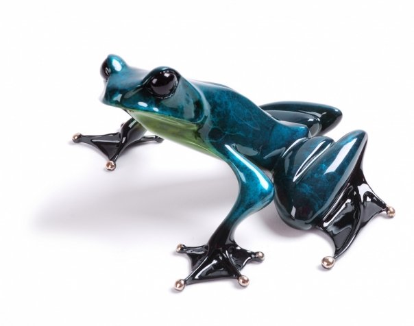 Description: For the very first time ever, the Frogman Tim Cotterill has created two sculptures exclusively for the UK. This is one of them (the other is Dodger) and what's more the edition size is only 250! Darcy is a very special guy in gorgeous silver nitrate strong green with a blue underside.