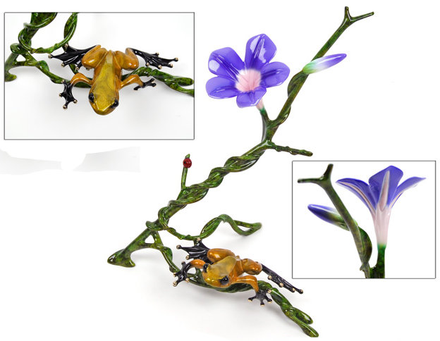Description: Morning Glory is the beautiful new flower sculpture from Tim Cotterill for 2009. This gorgeous creation has an amazing blue/purple flower and a sparkling gold frog sits lazing below. It is a tribute from Tim to his Mother. It is the fourth in this annual flower series.