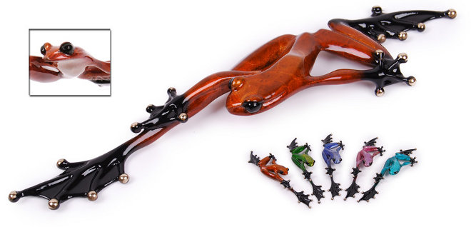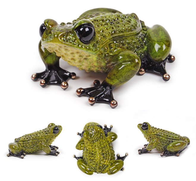 The frogs are incredibly heavy, cast in solid bronze. A six step process then creates the final jewel-like patina. They are all individually finished, all signed underneath and all have a world-wide limited edition number which is recorded underneath. All frogs come with their own certificate, are signed and numbered.