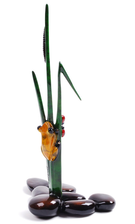 Description: A gorgeous new frog. He's got lots of attitude. His colour is a beautiful yellow/green patina. He's the third piece in the Frogman Gems Collection.